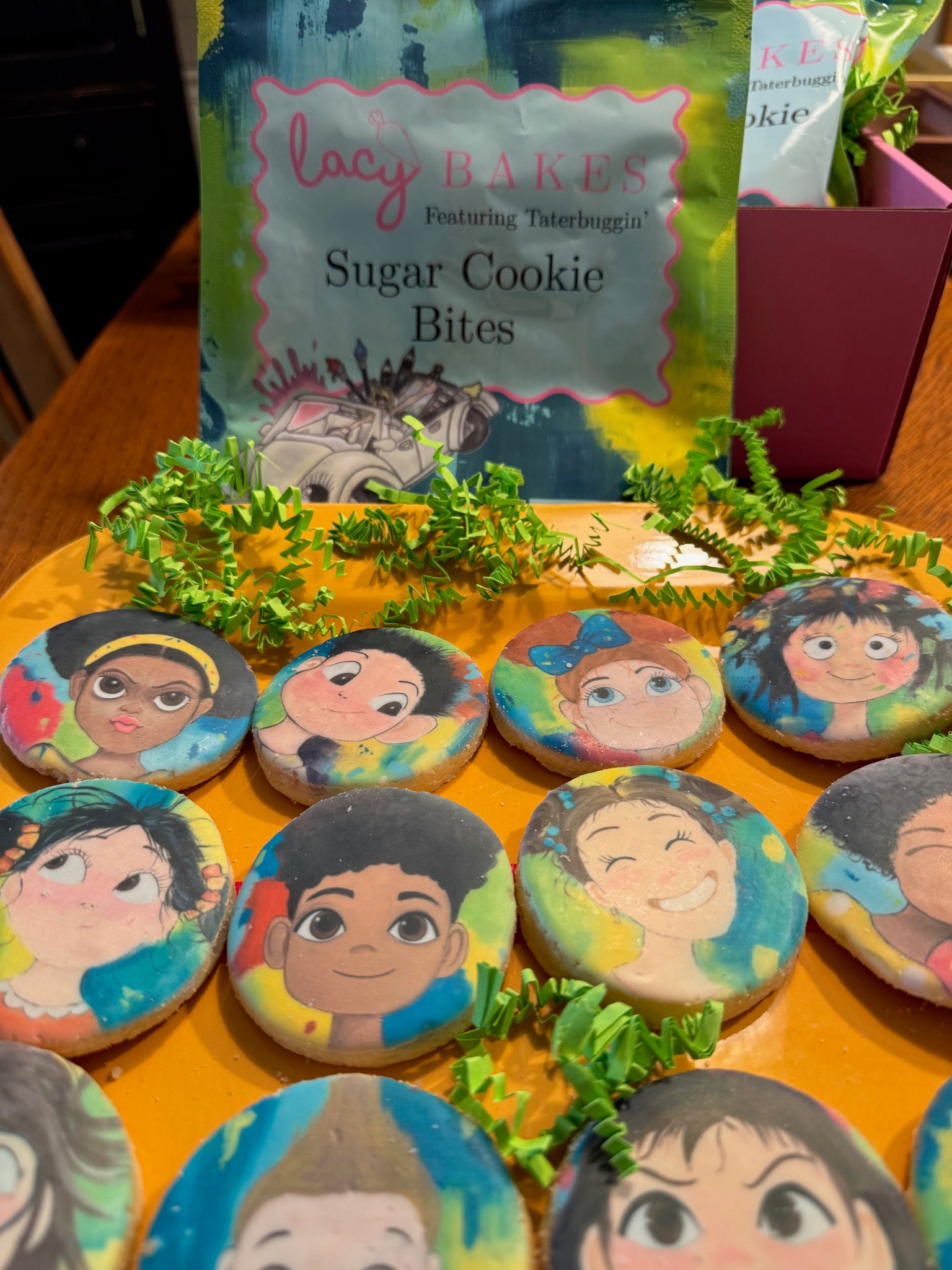 This delightful collaboration between Lacy Bakes and Taterbuggin’ brings Lindy Tate’s joyful art to life in the sweetest way imaginable. Each package is filled with handcrafted sugar cookie bites — baked to perfection by Lacy and wrapped in packaging as beautiful as the treats inside.